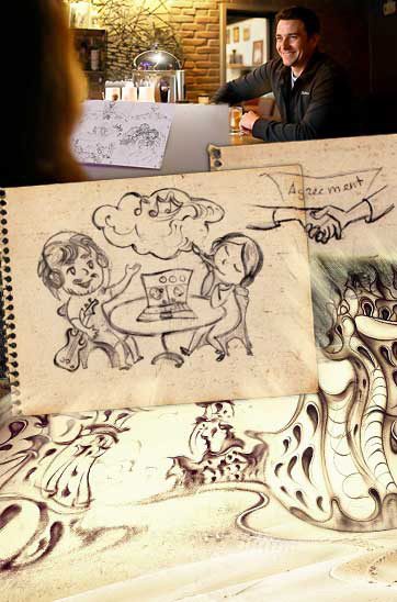 4 I sends you the sketches for approval and we discuss them together. At this stage we can make changes to the story or to the shots. And we also need to think carefully about editing techniques at this phase.